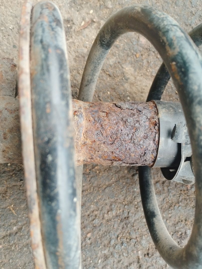 Коррозия верхней чашки, порван пыльник, коррозия на амортизаторе